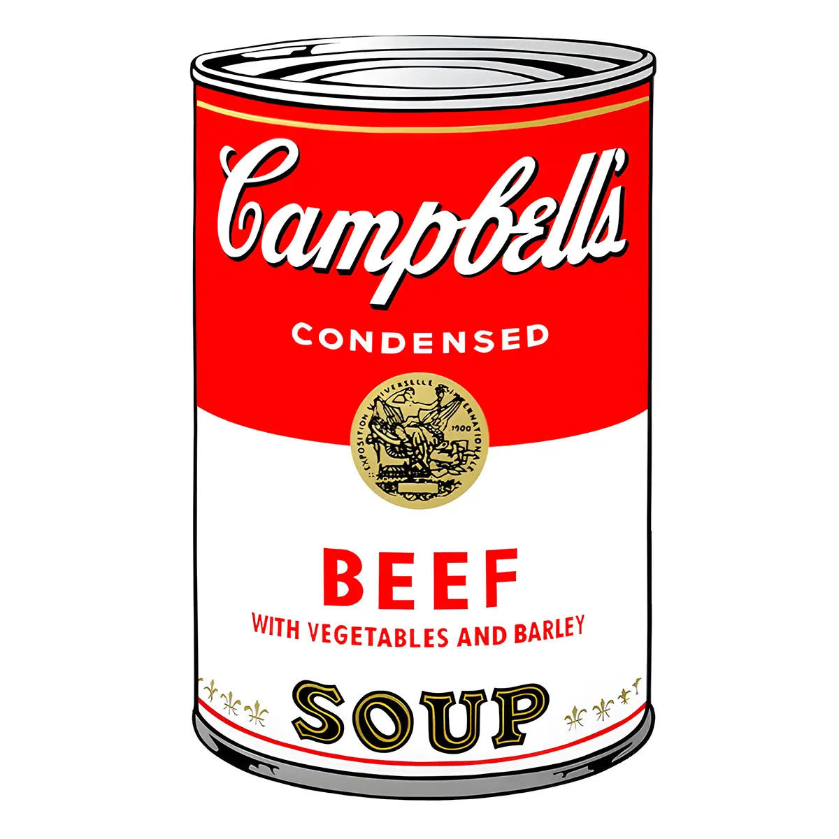 Serigrafía a color de edición póstuma (after) de la icónica serie «Campbell’s Soup I» de Andy Warhol, editada en Bélgica por Sunday B. Morning. Esta obra se efectuó utilizando los negativos (matrices) y códigos de color que el mismo Warhol entregó a la casa editora belga para hacer nuevas ediciones de algunas de sus obras de arte. Edición póstuma abierta, no firmada. Certificado de casa editora.