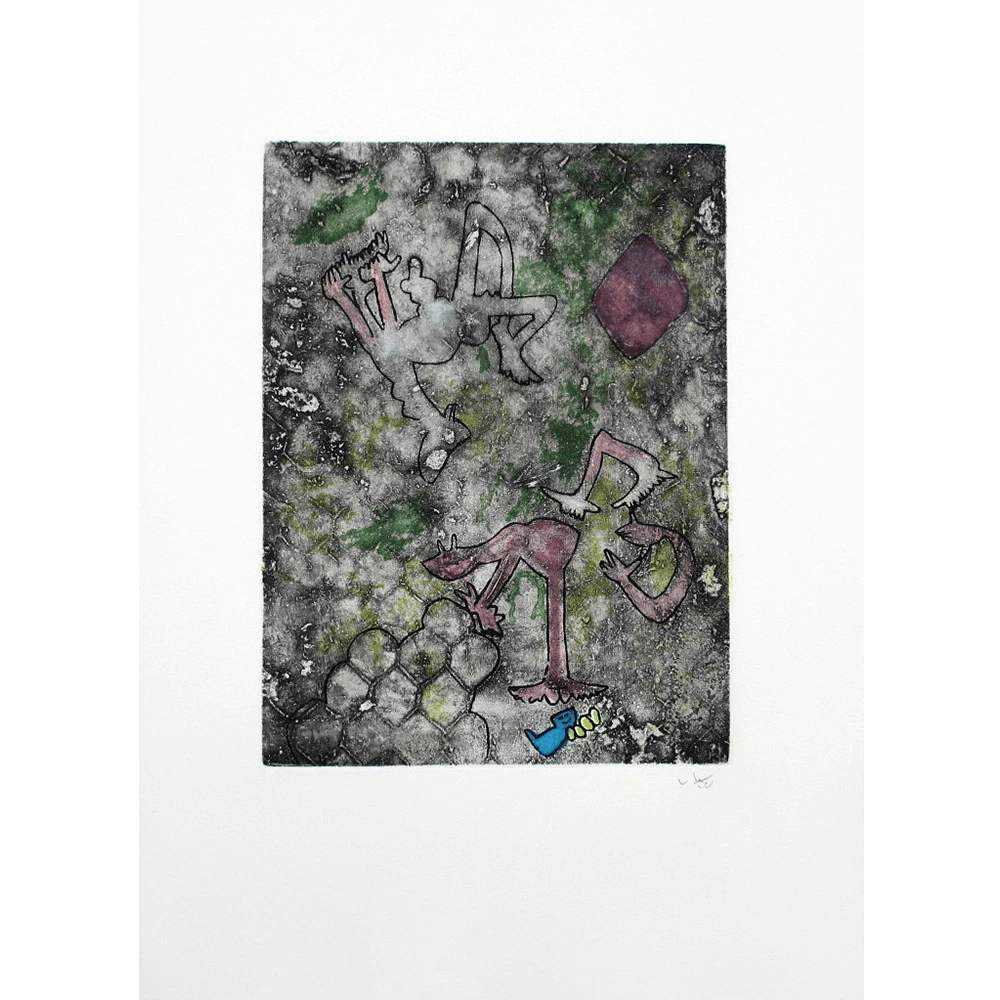 Aguafuerte sobre papel de Roberto Matta. Año 1974. Papel artesanal. Realizada en París, Francia. Edición limitada. Catalogada en catálogo razonado de Georges Visat N°394. Título «Centre Noeuds» plancha 2. Numerada y firmada a mano.