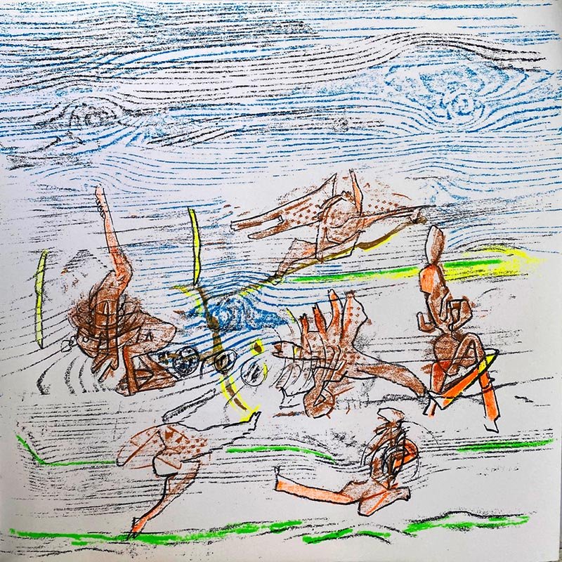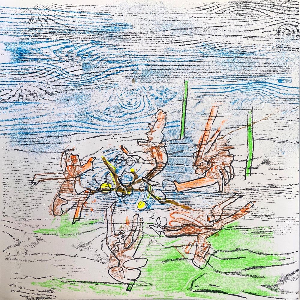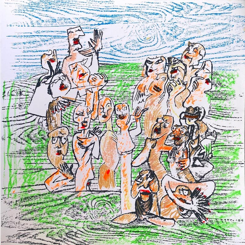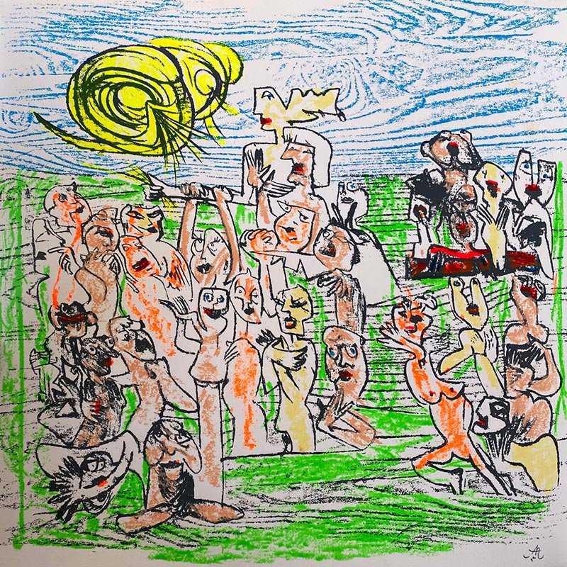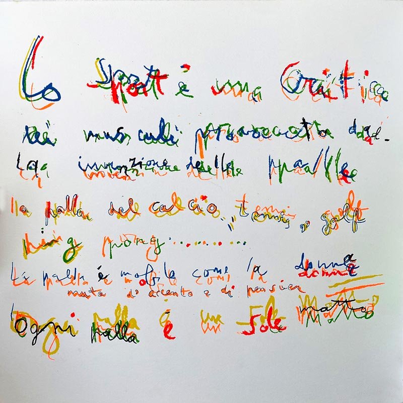 Extraordinario libro de artista de Roberto Matta, realizado en homenaje al Mundial de Fútbol Italia 1990. La obra está compuesta por 8 serigrafías de 55 x 58 centímetros cada una, dispuestas en un acordeón de gran formato que alcanza un total de 55 centímetros de alto por más de 5 metros de largo. Presenta portada y contraportada enteladas, además de un collage original en la portada. Publicado en 1990 en Florencia, Italia. Edición limitada, catalogada. Obra numerada y firmada a mano por el artista.